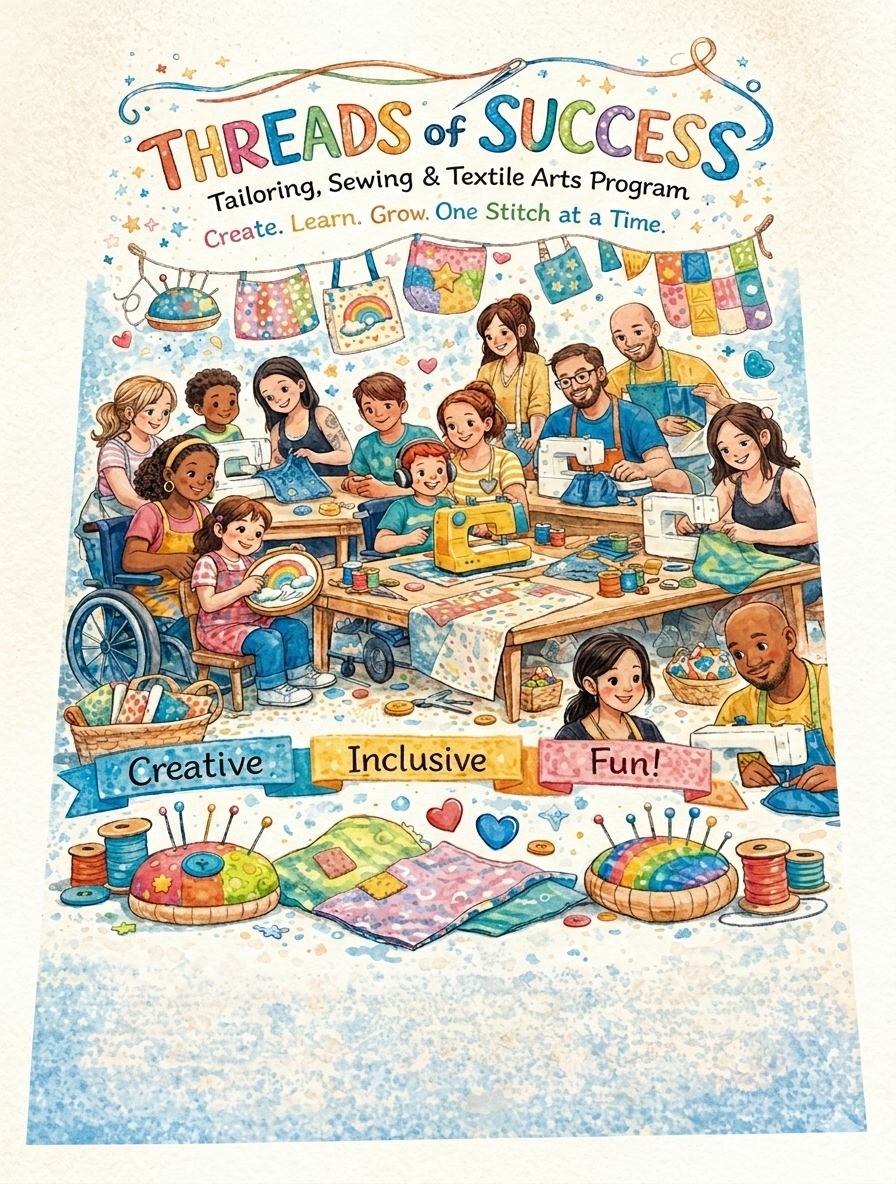 Our mission is to inspire creativity, skill, and confidence through sewing and garment care. We are dedicated to providing high-quality alterations while fostering a welcoming and supportive learning environment. Our sewing classes are designed for learners of all ages and abilities, including special needs sewing classes and autism sewing classes, ensuring every student feels valued and included. We celebrate diversity and embrace inclusivity, encouraging everyone to explore their creativity, develop practical skills, and express themselves through meaningful, hands-on sewing projects.